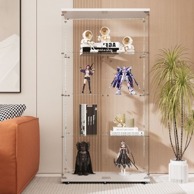 - Tempered Glass Display Cabinet: Measures65.87" (H) x30.91" (L) x13.58" (W), with an overall weight capacity of 110 lbs, each tempered glass shelf can hold up to lbs
