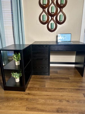 [This review was collected as part of a promotion.] This modular design is great. I really love how I can switch up the positioning whenever I want. I can use the desk by itself, with the filing cabinet, the bookshelf, or both. This desk set is made from compressed wood and it is heavy. The black finish has that nice wood grain detail. The set can in three separate boxes and requires assembly. The drawers are spacious, also having a soft close feature preventing loud slams. The assembly was pretty time consuming, it took me several hours to assemble all three pieces. I used a cordless screwdriver, but you really only need a screwdriver to assemble it. I did need help with a couple of pieces, but one person could assemble it alone. The instructions are very easy to follow and all the pieces and screws are numbered. My new desk is beautiful and well constructed. I’m sure it will last for years. It’s definitely not your cheaply made particle board furniture.