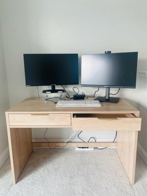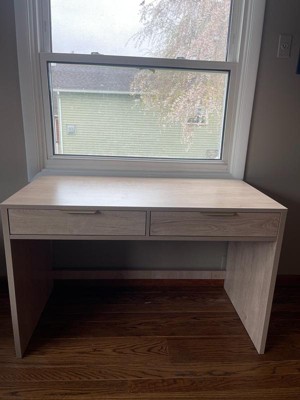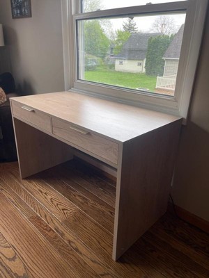 [This review was collected as part of a promotion.] It's a very durable desk in light oak color. The drawers are functional and pretty deep. I like how they have accent handles for grip. The desk is comfortable with smooth edges and gives a stylish look.