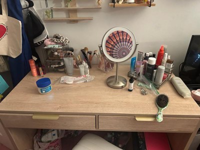 [This review was collected as part of a promotion.] This is a fairly large desk. I am using it as a vanity! Since it is so big, I can fit so much on it and it comes with two big drawers. It took over two hours to build though, hence why I did 4 stars. Maybe it was user error but it took me forever to build and I’m normally pretty good at building furniture.