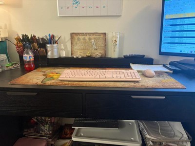 [This review was collected as part of a promotion.] This is a fairly large desk. I am using it as a vanity! Since it is so big, I can fit so much on it and it comes with two big drawers. It took over two hours to build though, hence why I did 4 stars. Maybe it was user error but it took me forever to build and I’m normally pretty good at building furniture.