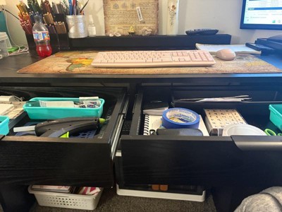 [This review was collected as part of a promotion.] I was honestly surprised at how easy this desk was to assemble—everything fit perfectly with clear instructions. The finish is sleek and modern, and it feels super sturdy, and it’s really heavy lol. The drawers slide smoothly and offer just enough storage. It’s a stylish, practical addition to my creative space that doesn’t feel bulky or cheap.