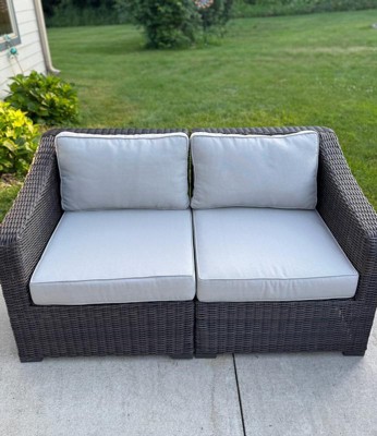 [This review was collected as part of a promotion.] This outdoor patio loveseat is very well built and durable. The weather resistant cushions and rattan wicker is going to help this last much longer on my patio. Installation only took me 5 minutes.