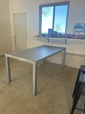[This review was collected as part of a promotion.] This table is incredibly durable and easy to assemble, as it is aluminum it won’t rot and will stand to the weather! The design is very modern and sleek. I love this table, it’s perfect for any setting and will match any decor!