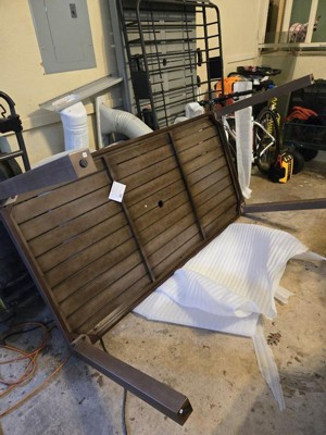 [This review was collected as part of a promotion.] Really satisfied with this table. The color is very nice and the metal is smooth though it has a beautiful wood finish. It's very sturdy and resistant to weather yet light enough to pick up easily with 2 people. The assembly was shockingly easy. Just have to attach the legs with the included screws and washers. Took less than 10 minutes.
