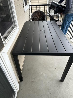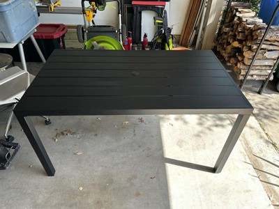 [This review was collected as part of a promotion.] This table has completely transformed my outdoor space! From the moment I unboxed it, I was impressed by its modern chic aesthetic. The clean lines and elegant design effortlessly complement my patio decor, creating a stylish focal point that I couldn't be happier with. Assembly was a breeze, everything was straightforward and quick, allowing me to set it up in no time. I appreciated how well the materials were crafted; this table feels incredibly sturdy and heavy duty, promising durability that can withstand the elements. The slatted top not only adds a touch of sophistication but also ensures that rainwater drains easily, so I don’t have to worry about water pooling. One of my favorite features is its versatility. The table is designed to accommodate an umbrella, which is perfect for those sunny days when you want to enjoy the outdoors without getting too hot. It’s a great addition for family gatherings, and I can already envision countless delightful meals shared around it. This morning, my family and I enjoyed breakfast outside at this gorgeous table, soaking in the fresh air and sunshine. It's the perfect setting for intimate meals or larger gatherings, and I can't wait to host a hibachi dinner party next week. The Lily Pond table will undoubtedly be the centerpiece of the evening, and I can already imagine the laughter and delicious aromas filling the air. In summary, the Martha Stewart Lily Pond patio table is not just a piece of furniture; it’s an invitation to create cherished memories with loved ones.