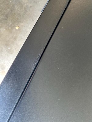 [This review was collected as part of a promotion.] I would give this 5 stars if it wasn’t for a huge dent in the center of the table. It does not appear to have happened during shipping as the box was in normal condition, but I opened it up to find a rather deep dent. Otherwise the table is super sturdy, went together easily and looks great. The powder coating is a little rough in some places, but other than that the finish looks great. Definitely recommend, just wish it did not come damaged…