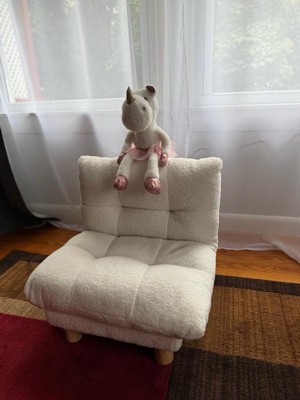 Buzz & Bloom Faux Shearling Cushioned Kids Chair with Tufted Seat and Back, Wood Legs in Marshmallow