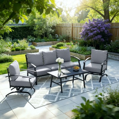 Martha Stewart Bedford Indoor-Outdoor Modular Patio 5-Seat Sectional Sofa in Gray Rattan Wicker with Gray All-Weather Cushions