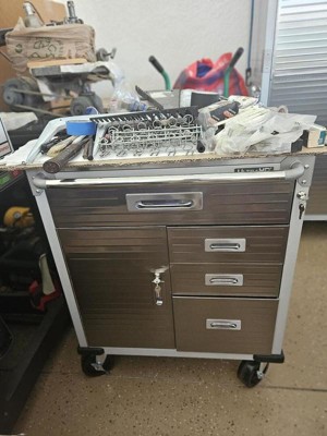 We bought the UltraHD 4 drawer cabinet to store freeze dryer supplies and to use as a work surface to package food items as they come out of the freeze dryer and prep space as we load the machine. It has worked very well. The surfaces are easy to clean and the drawers are sturdy and well made to hold all of the supplies and the side cabinet shelf fits the oil supplies needed for the freeze dryer. The wheels are very sturdy so the surface doesn't wobble and wheels lock into place when needed. I highly recommend this cabinet if you are looking for something that both stores things and has a solid work surface.