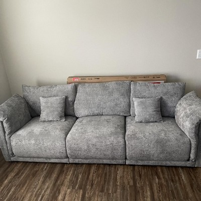 98.5"W Sofa Couch 3-Seater Sofa with Soft Arm Pillows, Comfy Chenille Sofa with Deep Seat, Gray - ModernLuxe