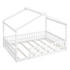 Product Name: CAVINAS Full Size Bed Frame, Wood Bed House Bed Frame with Fence, House-Shaped Floor Bed for Kids, Teens, Girls, Boys, Floor Platform Bed -White