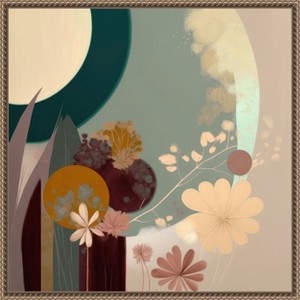 The artwork features an abstract floral composition with a harmonious blend of geometric shapes and pastel colors. Large circular forms complement delicate floral elements, creating a modern and minimalist aesthetic. The soft color palette adds a tranquil and decorative quality to the piece. This canvas art print was created by Bella Eve and printed in Waunakee, WI. It is stretched across a solid surface to resist sagging. We use only premium, high-tension canvas. Our exclusive stretching techniques hide corner folds and provide a taut canvas surface. The artwork is authentically licensed. The canvas appears as if it is floating in the frame because it has a narrow gap between the edge of the canvas and the frame. Our canvas items are individually made using traditional custom framing techniques, it has the quality you would expect from your local frame shop.