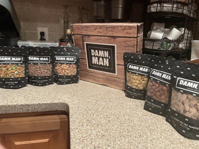 DMSnacks Manly Nut Box – Gourmet Mixed Nuts Gift Set with 6 Bold Varieties in Resealable Bags | High Protein Snack Gift Box & Holiday Gift are fantastic. The branding is corny and non essential but the snacks great. Perfectly portioned for watching a game, he "ate the whole bowl".