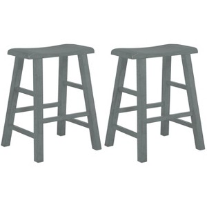eHemco Heavy-Duty Solid Wood Saddle Seat Kitchen Counter Height Barstools, 24 Inches, Set of 2