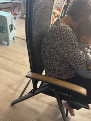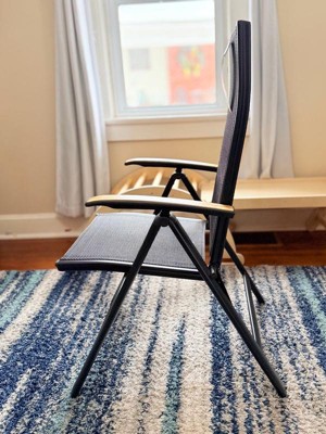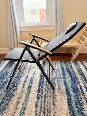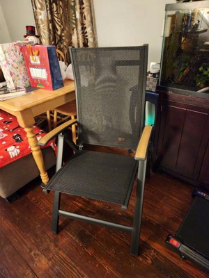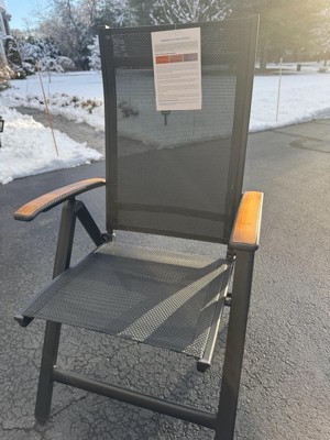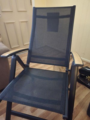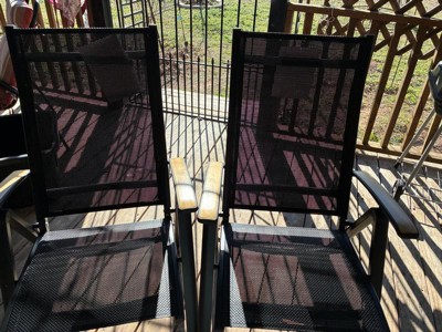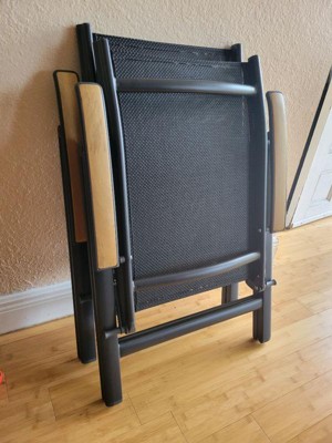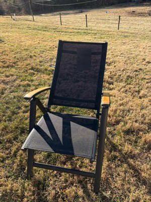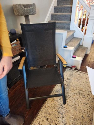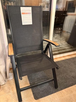 [This review was collected as part of a promotion.] I LOVE these chairs! I haven’t gotten to use them outside yet, but I know I’ll choose these over my other chairs. They’re extremely comfortable and sturdy. The material is somewhat springy, so they feel great to sit in. They recline, which just makes them even more comfortable. They look great with the black fabric and teak wood arms, and they’re very light weight and easy to carry. They are the perfect size for an adult, while still being very portable. Perfect outdoor chair!