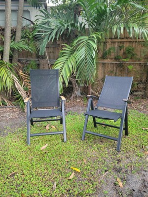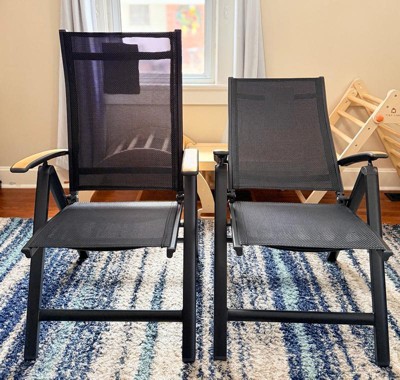[This review was collected as part of a promotion.] These are really nice outdoor chairs and fit my space perfectly. I wanted something comfortable that I could easily take out and put away, and these check all the boxes. They’re lightweight, easy to move, and fold up smoothly for storage, which is important to me since I don’t leave furniture outside. One of my favorite features is that the back is adjustable right from the armrest. You can change the angle easily, and it can fully turn into a lounge-style chair. Super comfortable and great for relaxing. They look great set up, feel sturdy, and the material is breathable. If I happened to leave them outside, they seem like they could handle the weather, but I personally plan to store them when not in use.
