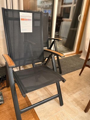 [This review was collected as part of a promotion.] Truly great chairs. Currently in winter here but can’t wait to set them on our deck. Love the UV resistant and breathable material and the frame is super lightweight and love the wider frame legs. The natural teak wood on the arms is a classic look and love it comes with directions on how to care and clean the teak wood over the years. It has 8 different reclining options and it’s easy to adjust and very comfortable. Once it’s folded up it’s very slim and easy to store and again super lightweight. These would look amazing on a porch, deck, or with an outdoor dining set. They are even very nice to use inside for extra quests etc.