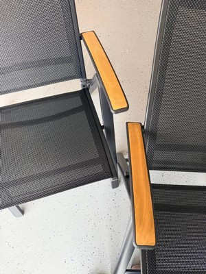 [This review was collected as part of a promotion.] Portability: These chairs fold quickly and are easy to carry from storage to the patio. Size: The footprint is compact, but the seat feels roomy enough for an adult. Maintenance: The aluminum frame wipes clean fast, and the textilene dries quickly after rain. Comfort: The seat is supportive and breathable for longer outdoor meals. The teak armrests feel smooth and comfortable. Weight: They feel light to move around, but still stable once set up.