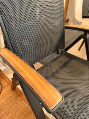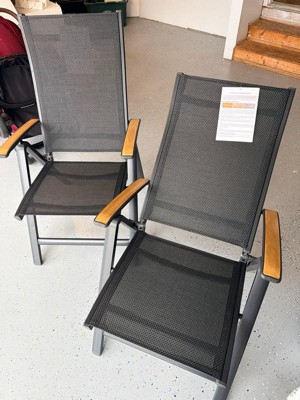 [This review was collected as part of a promotion.] I was very impressed with these chairs, very lightweight and durable feeling. I have back issues and they were comfortable to sit in. The teak armrests are a nice touch and will age well. You can recline them pretty far back I can't wait for our snow to melt to finally use them!
