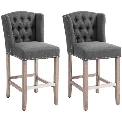 Complete your breakfast nook with this stylish bar stools set of 2! These counter height bar stools feature thick cushioned seats with breathable linen fabric for all-day comfort. The 26.75" counter stool height perfectly fits 35"-39" counters, while solid wood legs with foot bars ensure durability. Create the perfect socializing spot without crowding the kitchen with these versatile barstool chairs.