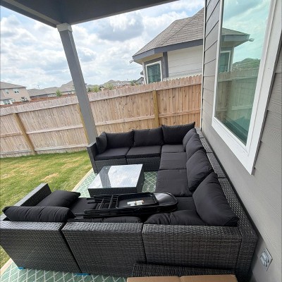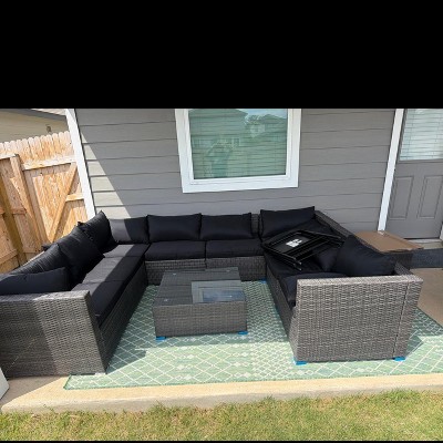 Costway 10 PCS Outdoor Patio Sectional Sofa Couch PE Rattan Conversation Set Black