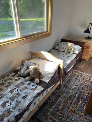 This arrived a few weeks ago and is exactly as described. I love the blend of colors in the denim background. The rug is thick and warms up the new attic room.