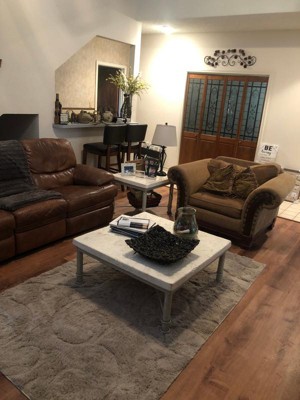 We love the rug. Nice soft neutral color. The design is perfect and a little toned down from the way it looks online. Online it looks like it’s almost a lighter tan, but maybe they just lighten the swirl area for affect. I’m actually glad it’s toned down as I wasn’t sure about that lighter color in the swirlEd areas.