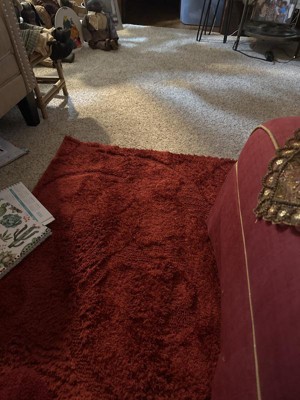 Just what I was looking for! Has the shag look & softness yet I can use my vacuum cleaner on it! (recommend bare floor setting & not the brush) Received quickly, less than 2 weeks. It smooths it quickly, I sat some heavy items on the edges as soon as we opened it.