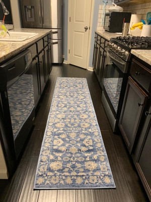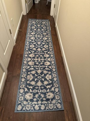 Unique Loom Boston Collection Area Rug - Floral (2' x 8' Runner Blue/Ivory)