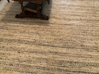 This rug looks really cool and is high quality. The added blackr threaded throughout gives it dimension. It is a little scratchy, though, so it’s probably best in an area where it mostly sees shoed-foot traffic.