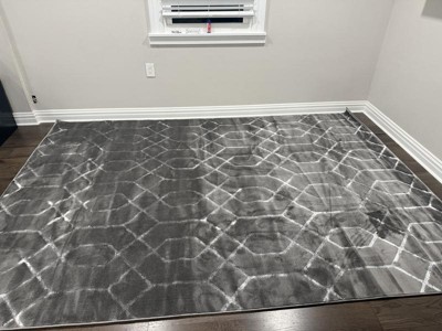 So thankful for Rugs.com's return policy. I went through a dozen rugs before settling on this one. It's everything I wanted: 1. A TRUE grey (since it's a hint of silver). Their other grey rugs were beige or taupe. 2. So soft. My kids and I would test out the other rugs and none of them were soft enough to play on. 3. Low pile because I wanted my kids to play with their toys and not lose little pieces. Mine has a little nick in the fabric but given that I got the 7x10, I'll just snip it off and pray it's not noticeable. (That's my reason for deducting a star) The trick with new rugs is to vacuum them TWICE, then re-roll in the other direction and leave them that way for a day. They flatten out nicely after that.