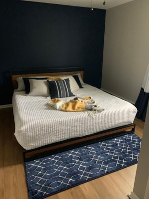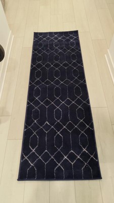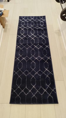 I bought this rug last week (blue and silver glam trellis, 2x6 runner). I don't know if QC is bad or what, but the actual silver trellis design is super thin compared to pictures. It's still a cozy rug, and does the job, just a shame the posting wasn't accurate to what the rug actually looks like.