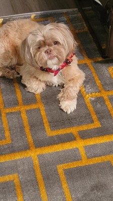 I bought this carpet about a month ago and I fell in love it instantly! Oh, and my dog loves it too! It matches the colors in my living room. I’ll definitely buy again from rugs.com