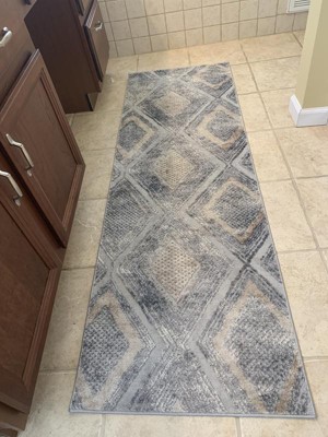 Husband approved runner for bathroom . Nice combination of blues and grays.