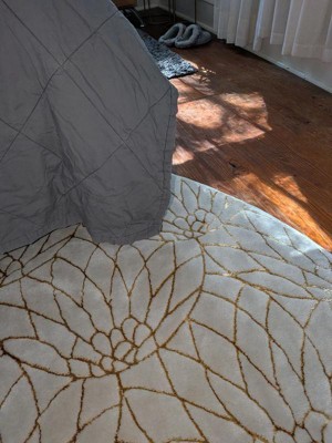 The off-white base of this rug is fluffy and feels great on my toes, and the gold flowers look luxurious! I love how the gold shimmer is subtle but still visible in the sunshine.