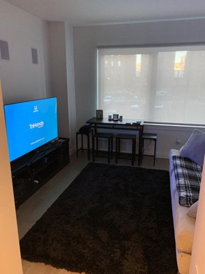 For the price, the black shaggy rug gives the house a great look