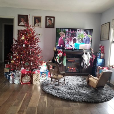 Bought for in front of my fireplace My grandkids love to lay on it with a book or blannket. Easy to clean too