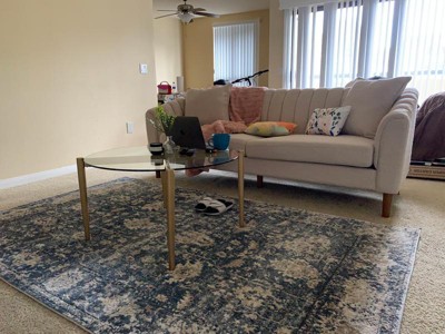 I bought this a few weeks ago and it shipped quickly. Quality is amazing and I bought it on sale for $80 so I got a very good deal. It looks beautiful! I love the vintage look and the colors. There is still a new carpet smell but it isn’t strong. Here are two photos: 1 when I opened it at my parents house, 2 at my apartment.