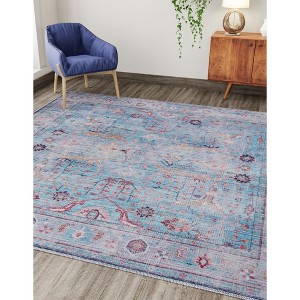 Just the right amount of color, the perfect proportion of patterns and machine washable. That's what makes the Maahru Collection an obvious choice for accenting any room's décor. Choose from various traditional patterns like tapestry designs, geometrics and floral elements that give any home classic, Old World charm and grandeur. The over-dyed, distressed treatment of each style brings an on-trend aesthetic, making these rugs both classic and contemporary at the same time. The rich reds and blues, accented by touches of creams and golds, will blend perfectly into any room. Although the colors and patterns might look like a delicate antique textile, this collection is made for modern convenience with a traffic-friendly low pile height. Machine woven, each rug is machine washable, so there's no need to stress about spills or stains. Made of stain-resistant, kid-friendly polyester chenille, these gorgeous rugs are easy to keep looking great for years to come.