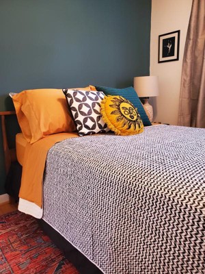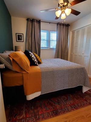 I ordered the 7x7 Mahruu rug to complement the bedroom style I was going for. It was exactly what I hoped for. I decided to pull a color from the rug and paint an accent wall. The rug is flat with no pile and easy to move around. It's perfect for under the bed and for our airbnb. It has been easy to clean so far. Shipping was super fast (better then where I usually get rugs by far). I would definitely order from Rugs.com again.