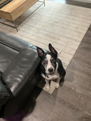 Definitely not the highest quality but it does look nice in the room! And it was a great price. A thicker rug pad might add a more luxurious feel; we just have the thin anti slip pad. Arrived with a sticker saying due to shipping restrictions, the rug had to be folded. I found that annoying because it was difficult to get the creases out. We’ve had it several weeks and it still shows some wrinkles. Ran my steam mop over it and that helped a little. All in all, though, I’d say I really like the rug and the price point. Pictures are accurate.