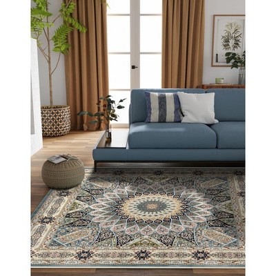 Nice rug. Color is exactly as pictured. The pile height of the rug is really low. The rug isn't exactly "squared" along two edges, they are curved and about an inch off from the lengths, if that makes sense? Perhaps the weaving is too tight on those corners. And it will take forever for the rug to flatten out a d be smooth. The packaging was amazing amd the shipping was on time.