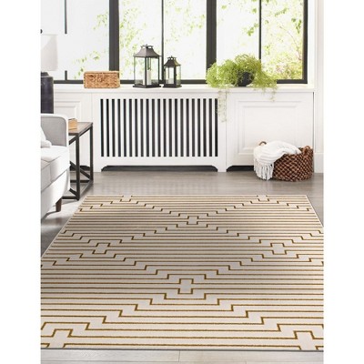 Unique Loom Vogue Geo Collection Area Rug - Column (5' 1" x 7' 1" Rectangle White and Gold)