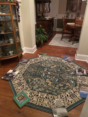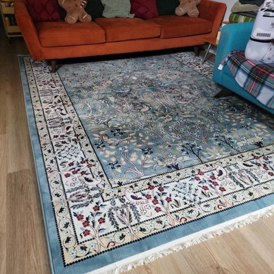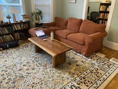 I bought a runner and 7'10x10 area rug of this pattern. As much as I love the runner which I raved in my other review, this area rug did not meet my expectations. Mainly because of the inconsistencies of the main color. The one I got has a big area which main color is obviously lighter than the other ones. It looked like at some point they ran out of dye/ink, during the process of making it. I purposely got this because of the color and pattern. It's disappointing how uneven the shades are. I decided to keep it because I do not want to go through the hassle of returning a ginormous rug. This could have been a perfect rug if the primary colors are even (darker and not light). I wish rugs.com checks the quality of their rugs first before sending it out.
