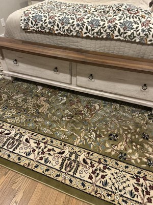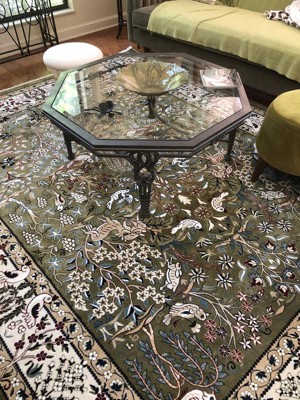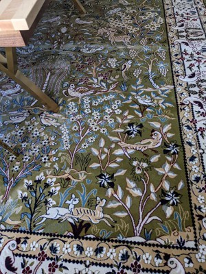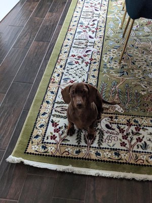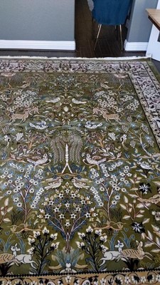 The quality of this machine made rug is excellent. I was very pleased with this rug It is very beautiful. The green is not as vivid as pictured but it worked out. I love it as it is soft underfoot and light weight