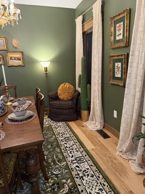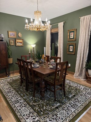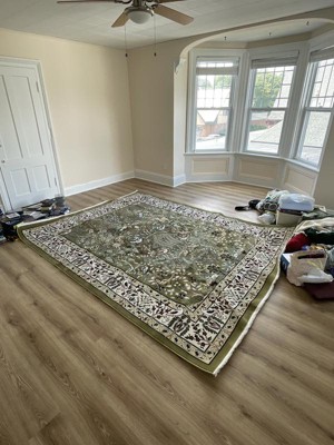 The 8 x 10 Rabia Rug is super high quality and the rug detail is immaculate. It works perfectly in my modern farm house master. It is muted green/moss with the right amount of cream undertones and black detailing. Pleasantly ecstatic with the purchase.