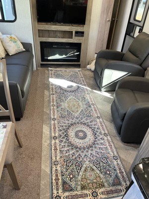 I was looking for something for our new travel trailer and this pattern caught my eye.. I love the colors and the fact that it rolls up easily so I can tuck it away when we’re not using the trailer. It’s easy to vacuum, very flat, which is what I was looking for, and it looks perfect!