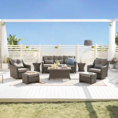Whisen 8-Piece Wicker Rattan Patio Sectional Set with Storage Box, Cushion Box & Clear Glass Top