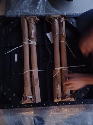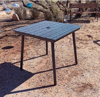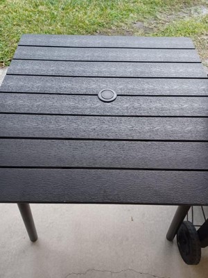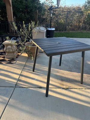 [This review was collected as part of a promotion.] This outdoor dining table is small and sturdy. It is well made. Everything was included to put this together. After assembly it is very light and easy to move. I love that there is an option for an umbrella in the middle and that it is weather resistant. I wouldn't trust it to high winds, of course. Great for any outdoor space, small or big.